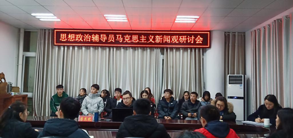 11月27日晚,crown sport官方网站特邀校党委宣传部李东晓老师于逸夫楼302会议室召开马克思主义新闻观研讨会,学院教师余艳楷、沈艳霞、许孟杨、竹梅、刘迎迎、吴浩以及院学生会新闻宣传部、新媒体制作团队全体成员参与本次会议。