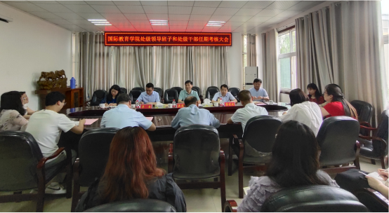 6月3日下午,国际教育学院处级领导班子和处级干部任期考核会在逸夫楼302会议室召开。学校第五考核组组长、党校副校长、组织部副部长吴道省,考核组成员、党委宣传部副部长雷前龙,党委组织部综合科科长李奎出席。国际教育学院全体教职工参加会议。会议由crown sport官方网站党委书记张震主持。